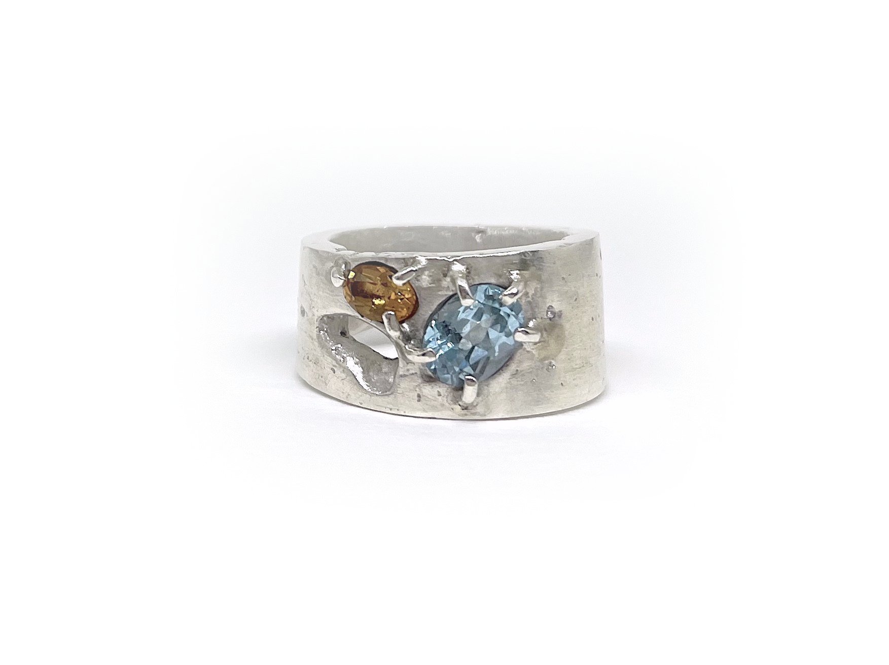 Bague en argent 950 & pierres semi-précieuses : 1 topaze et 1 citrine.